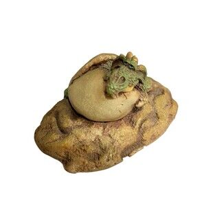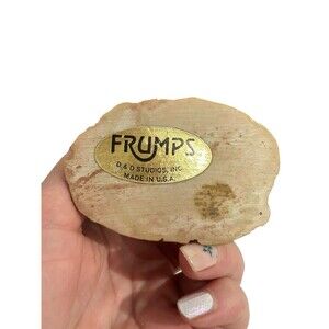 The Frumps "Taf" Hatching Dinosaur Sculpture Art Figurine is a small, multicolor resin sculpture depicting a dinosaur hatchling. Signed by D & D Studios in 1991, this collectible figurine is part of a collection of animal-themed art pieces, making it a unique and decorative addition to any collection or display. With its intricate design and attention to detail, this figurine is sure to appeal to fans of both art and dinosaurs alike.