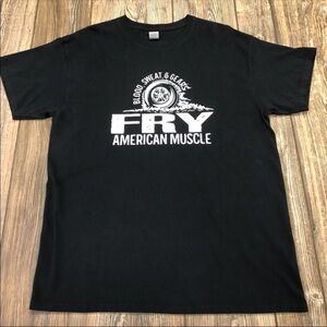 Fry American Muscle Blood, Sweat, and Gears Black Short Sleeve Tee Shirt