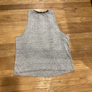 Gray tank with raw edges, ringer neck, Fryday French fry graphic