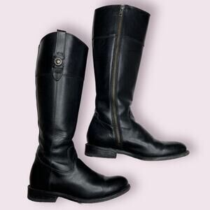 3476095 Melissa Inside Zip Black Riding Boots by Frye! These boots are in excellent pre-owned condition with minimal wear.