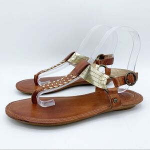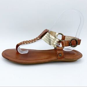 Frye Alessia Artisinal Brown/Gold Flat Thong Sandals Sz 6