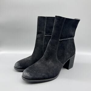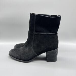 Frye And Co Boots Womens 9.5 Black Suede Block Heel Ankle Booties Zip