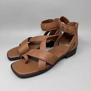 Frye And Co. Tallu Cognac Brown Back Zip Sandals Women's Size 9.5