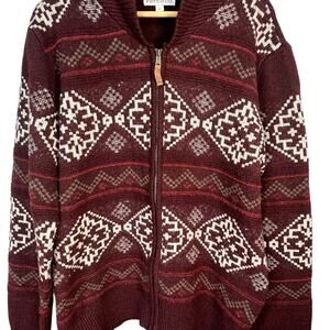 Frye And Company Men’s Wine Geometric Full Zip Cardigan Sweater Large