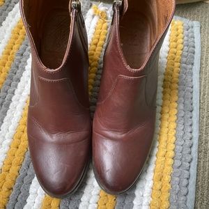 Pre-owned authentic Frye Women's Nora Zip Short Ankle Leather Boots Size 7.5 Redwood Brown Style 3471441 RDD.