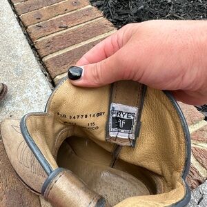 Super cute Frye ankle boots. Love these, but they are just too small for me.