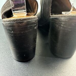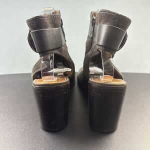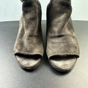 Frye Ankle Boots Womens 9.5M Brown Danica Harness Suede Leather Peep Toe Booties. Condition is "Pre-owned"