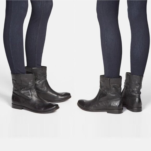 Frye Anna Black Leather Shortie Ankle Pull On Boots size 9