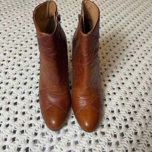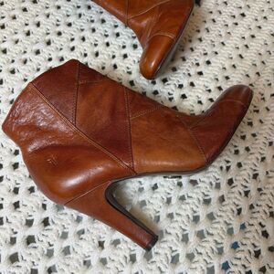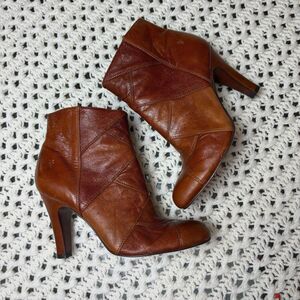Frye Ava Shootie Heeled Ankle Boots, Patchwork Leather, Brown, Women's Size 9M