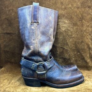 Frye Beautifully Distressed Brown Leather Harness Boots