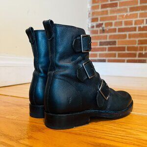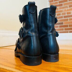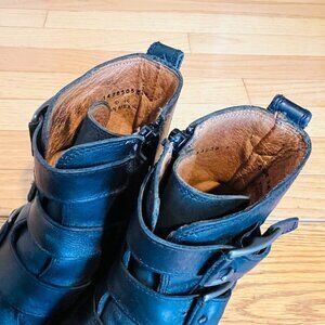 Frye Biker Chelsea Boots Combat Moto Natalie Triple Buckle Black Leather 6.5 B