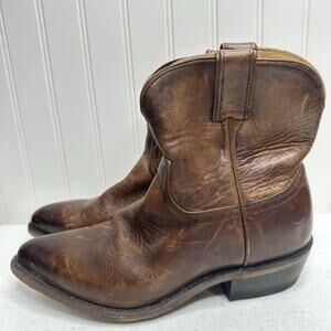 Frye Billy Short Boots Womens 9B Brown Leather Ankle Western Pull On Cowboy Distressed