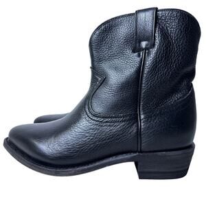Frye Billy Short Cowboy Boots 7" Shaft Womens 8.5 Black Pebbled Leather Pull On