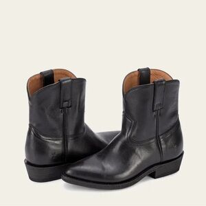 Frye Billy Short Western Leather Bootie Boots Cowgirl Cowboy Black Pallio