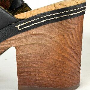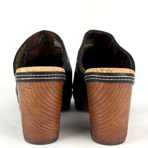 Frye Black Embroidered Clogs Size 10M | 2010s Vintage Chunky Heel Slip-On Mule