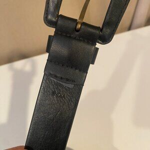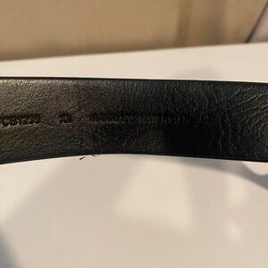 Stylish and versatile Frye black faux leather belt in XL with a matte brass-tone buckle. A classic accessory suitable for both casual and dress wear.