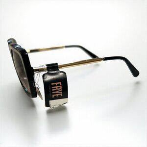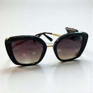 Frye Black Gold Oversized Square Sunglasses Cat Eye Designer UV Protection New