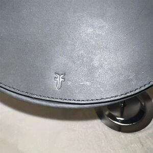 Keywords: Frye, crossbody, leather bag, black bag, Italian made, adjustable strap, spacious interior, embossed logo, semi-circle bag, flap closure, pre-owned bag, genuine leather.