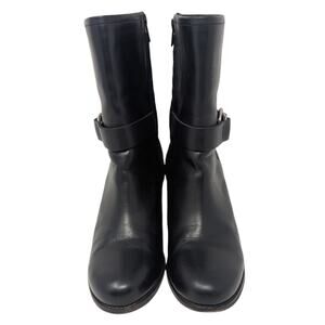 Frye Black Leather Heeled Mid-Calf Boots Buckle Strap Size 11