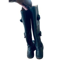 Frye Black Leather Knee-High Riding Boot Buckle Harness 5.5 Western Boho Cottage