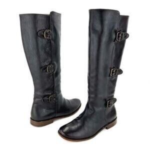 Frye Womens Black Leather Knee-High Boots With Buckle Detail Size 5.5 B Riding