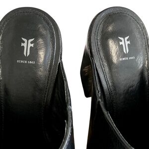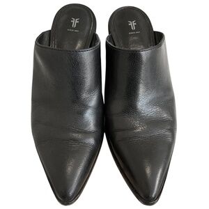 Frye Black Leather Slip On Flynn Mules 77084 Heels Shoes