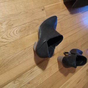 Frye Black Reed Shootie Size 8. I wore maybe once or twice. Description from Frye website: The inside zipper closure features a Concho detail at pull which is Frye's take on the Western trend. Made from antiqued pull up leather, the Reed shootie has a pointed-toe construction, dipped topline that lends an exposed ankle and rests on a chunky heel all of which makes for a most coveted style to wear this season.