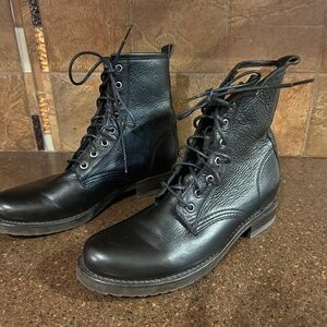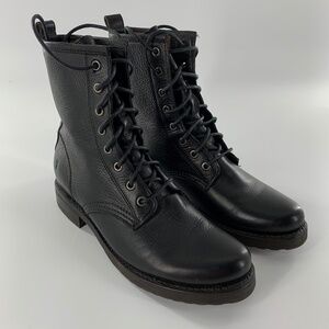 Frye Black Veronica Leather Combat Boots, size 8.5 B