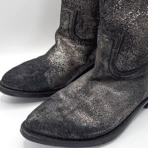 Stylish Frye ankle boots. Black and silver design. Perfect for any occasion.