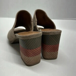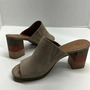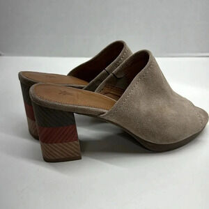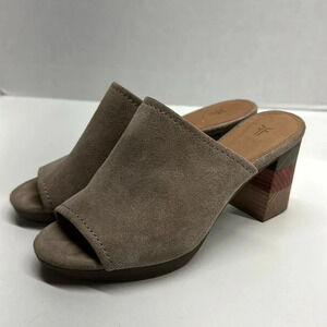 Frye Blake Heeled Mules Chevron Leather Suede Slip On Block Ash Brown Size 6.5