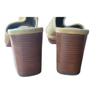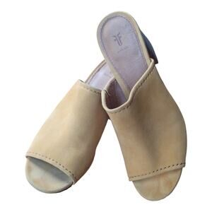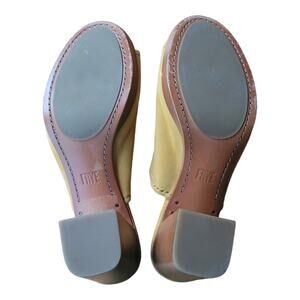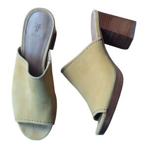 Frye Blake High Block Heel Mules Yellow Suede Slip On Leather Footbed