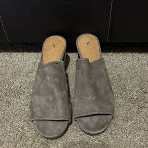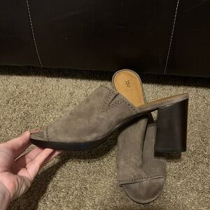 Frye Blake Leather Suede Slip On Block Heel Mules in Ash Taupe Women’s Size 9.5