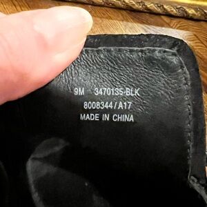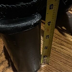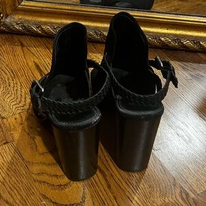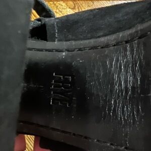 Black FRYE heels, good used condition. Heel height is 4.5 inches with about a 1/2 inch platform. Very comfortable. Adjustable ankle strap. Size 9.
