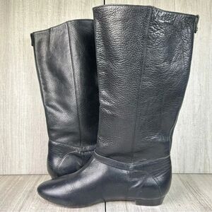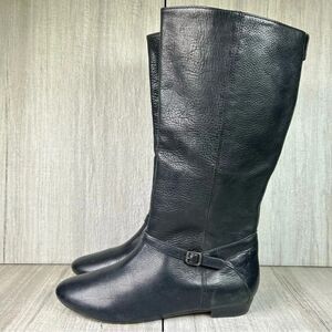Frye Bonnie Black Leather Low Heel Flat Mid Calf Tall Ring Boots Women’s Size 6