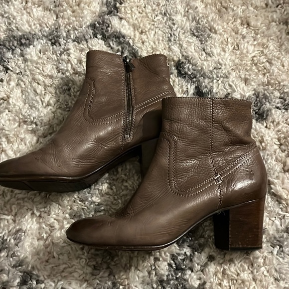 Heeled Frye booties with a zipper on the side, light slate gray color, trying to sell quickly so send your offer!!!