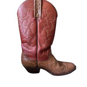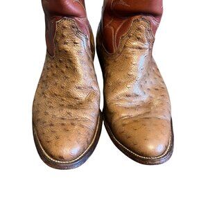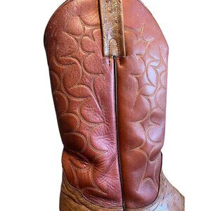 Frye Boots Leather Ostrich 10.5 Brown Western Embossed Cowboy Exotic Rodeo 80s