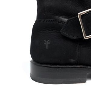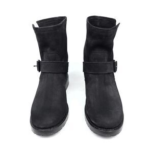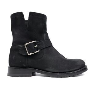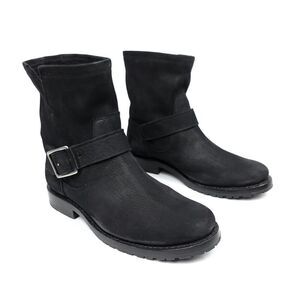 Frye Boots Natalie Short Engineer Boot Black Nubuck Leather Ankle Riding Booties