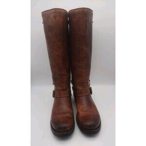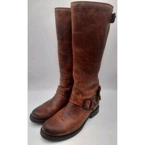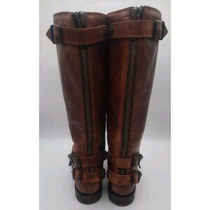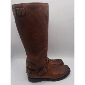 Frye Boots Woman 7 Distressed Zipper Buckles Brown Leather 4001