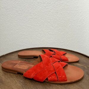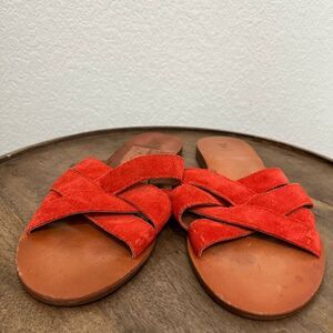 Frye Boots Red Suede Leather Carla Criss-Cross Open Toe Sandals Women's Size 8.5
