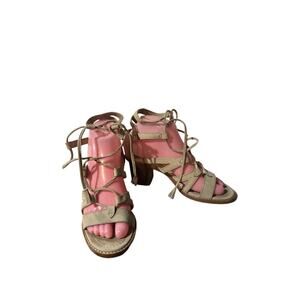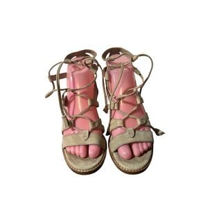 Frye Brielle Gladiator Sandals Women's US 7 M Beige Lace-Up Stacked Heel Strappy