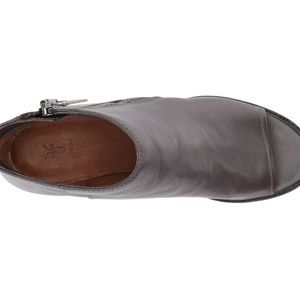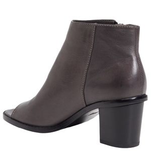 This women's peep-toe bootie is expertly handcrafted from polished soft Italian leather. Set on a comfortable block heel, it features an edgy zipper-detailed silhouette for a moto-inspired aesthetic.