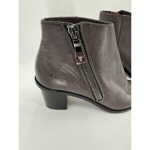 Frye Brielle Side Zip Peep Toe Bootie in Gray Leather Woman's US Size 7.5 EUC