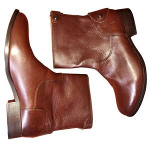 Stylish Frye ankle boots. Rich brown leather. Button accents. Perfect for any occasion.