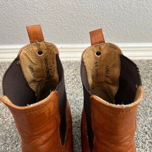 Stylish Frye heeled boots. Rich brown leather. Comfortable fit.