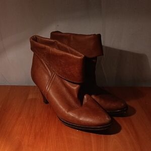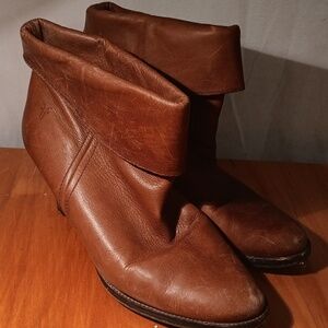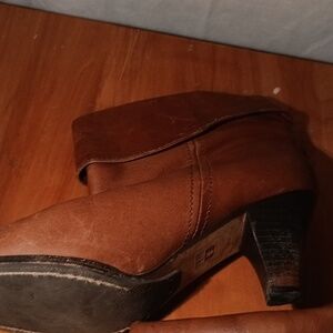 Frye brown leather ankle boots, size 9.5, pre owned in good condition