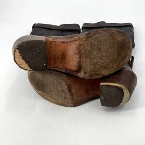 Frye Brown Leather Distressed Buckle heel boots