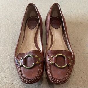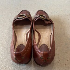 Frye Brown Leather Loafers with Gold Accents