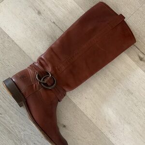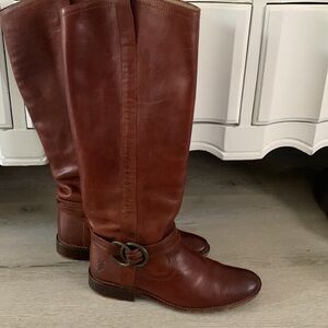 Frye Brown Shirley Leather Knee High Tall Boots Women's Size 5 1/2 B riding