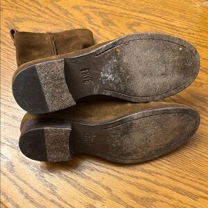 Elegant dark brown suede boots by Frye. Ideal for versatile styling.