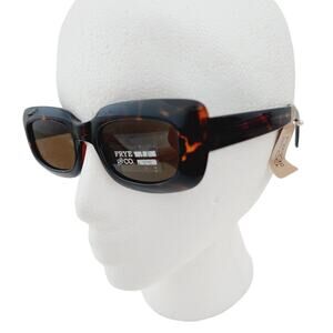 Frye Brown Tortoise Shell Print Brown Retro Cat Eye Rounded Rectangle Sunglasses 100% UV